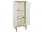 Miniarmario de estilo oriental fabricado en madera de abeto y mdf con tres baldas en su parte interior para apoyar prendas de ropa o pequeños objetos. Cuenta con tiradores metálicos grabados con motivos florales.