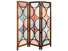 Precioso separador de ambientes de estilo boho chic retro hecho a partir de una estructura de madera de mango diferentes tonos de nogal y acabado con hilos en cuerdas de múltiples colores.