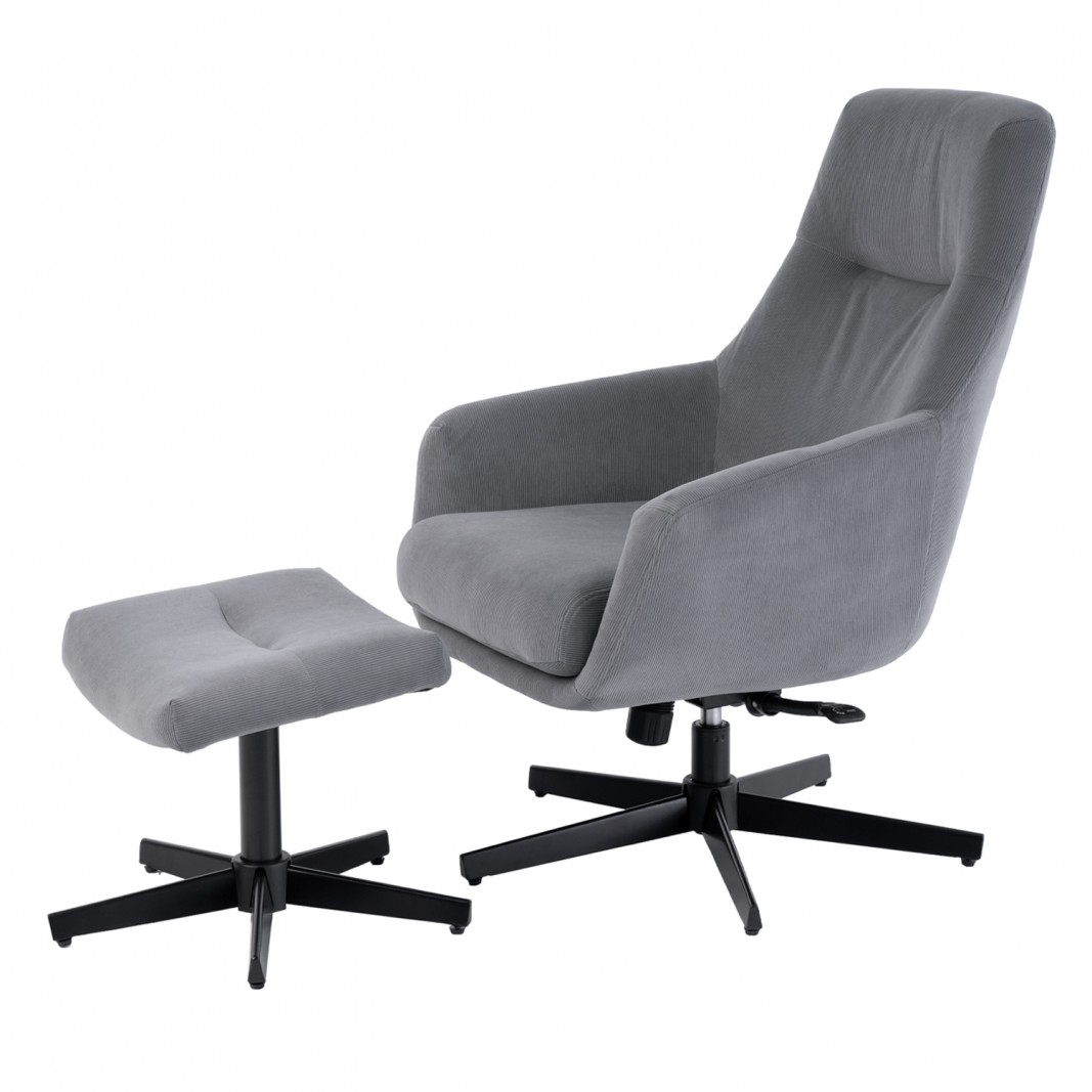 BUTACA GIRATORIA 360º/ RECLINABLE, GRIS, 71,50 x 75 x 96 (asiento 43,50) REPOSAPIES 46 x 37,50 x 38Medidas