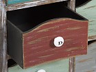 Fantástica cajonera de madera con acabado envejecido. Cuenta con un total de 18 cajones pintados en diferentes colores que puedes usar para guardar pequeños objetos, incluyendo joyas, pendientes, pulseras, etc.