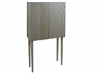 Esta consola alta destacará por su notable y elegante presencia en cualquier estancia de la casa. Fabricada en madera de mango de color gris envejecido, cuenta con dos puertas de armario decoradas en su parte frontal con figuras geométricas talladas.