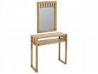 Fantástico conjunto para recibidor formado por una consola de madera de acacia con estante abierto en color madera natural y un espejo a juego de forma rectangular decorado con un listado de madera en su parte superior.