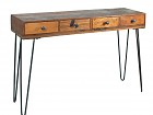 Fantástica consola de atractivo estilo industrial alzada sobre una estructura de hierro pintado en color negro y culminada con un sobre de madera maciza natural con las vetas propias de la madera, por lo que cada pieza es única. Su diseño de líneas rectas lo convierten en un mueble de recibidor que podrás ubicar en múltiples espacios como mueble de recibidor, tocador o consola en tu salón o comedor.