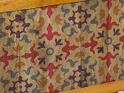 Gran recibidor de estilo retro vintage fabricado en madera de mango de color roble. Se levanta sobre cuatro patas inclinadas y dispone de dos puertas correderas decoradas con motivos de colores.