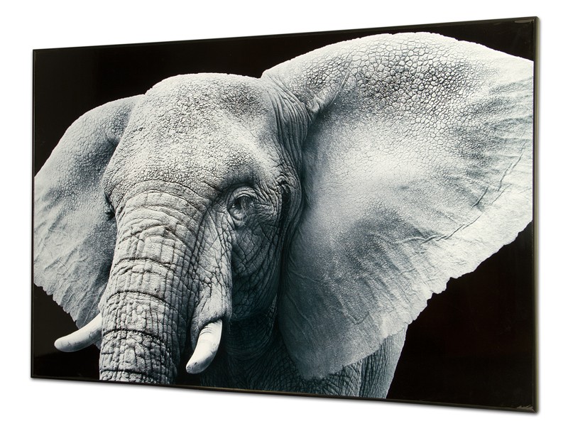 Fantástico cuadro digital en el que se muestra la imagen en blanco y negro de un elefante, y más concretamente de su cabeza. Una imagen tierna a la par que salvaje que te encandilará desde el primer momento.