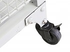 Estantería pequeña de estilo industrial vintage alzada sobre una estructura de hierro pintado en blanco con tres baldas de madera de abeto desgastada y un cajón de rejilla metálica.