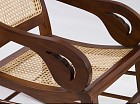 Silla mecedora de madera de teca en color nogal con asiento y respaldo de ratán en forma de rejilla. Una pieza de marcado estilo colonial que podrás disfrutar tanto dentro de casa como en la terraza o el jardÃn gracias a las propiedades de su madera de teca.