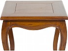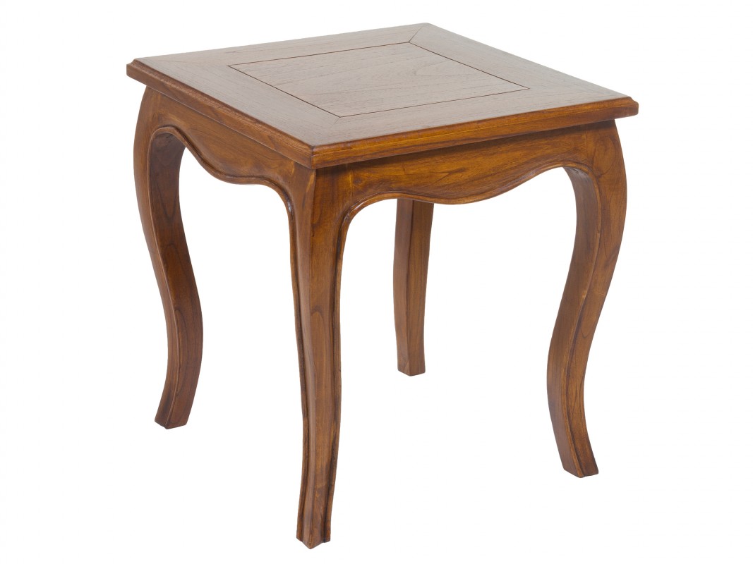 Mesita auxiliar de clásico estilo colonial con patas isabelinas fabricada en madera de acacia de primera calidad en color nogal. Sus bordes inferiores han sido decorados en la elegante y sinuosa lÃnea del resto de la pieza.
