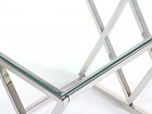 Espléndida mesa auxiliar de forma cuadrada con preciosas patas de acero inoxidable que sostienen con solidez su tapa de vidrio templado. Válida como pequeña mesa de centro o como rinconera junto al sofá.
