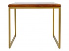 Mesita auxiliar de tamaño cuadrado con medidas 90x90 cm y 79 cm de alto. Versátil, de lÃneas rectas y una apariencia imponente. Posee un marcado estilo colonial moderno con patas de hierro en color dorado y tablero cuadrado de madera de mindi acabada en un precioso color nogal. Una mesa que con la que acompañar tu cocina, gracias a sus cómodas medidas da cabida a hasta cuatro comensales. También ideal como mueble de apoyo, mesa auxiliar para el salón o como un amplio mueble telefonero en el que colocar una lámpara.