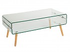 Fantástica mesa de centro realizada en vidrio curvado de 10mm de grosor y levantada sobre cuatro patas de madera de haya en posición oblicua. Gracias a su estante inferior integrado, esta práctica mesa de centro facilitará el mantener el salón en orden. Su baja altura la hace idónea para ser ubicada en frente delante del sofá en el salón de la casa. Es perfecta para ubicar revistas, libros o dispositivos electrónicos. Una mesa en tendencia de aspecto ligero que además, podrás colocar delante del sofá y combinarla con otras piezas diseñadas en vidrio curvado para darle un toque de belleza al salón, recibidor o dormitorio.
