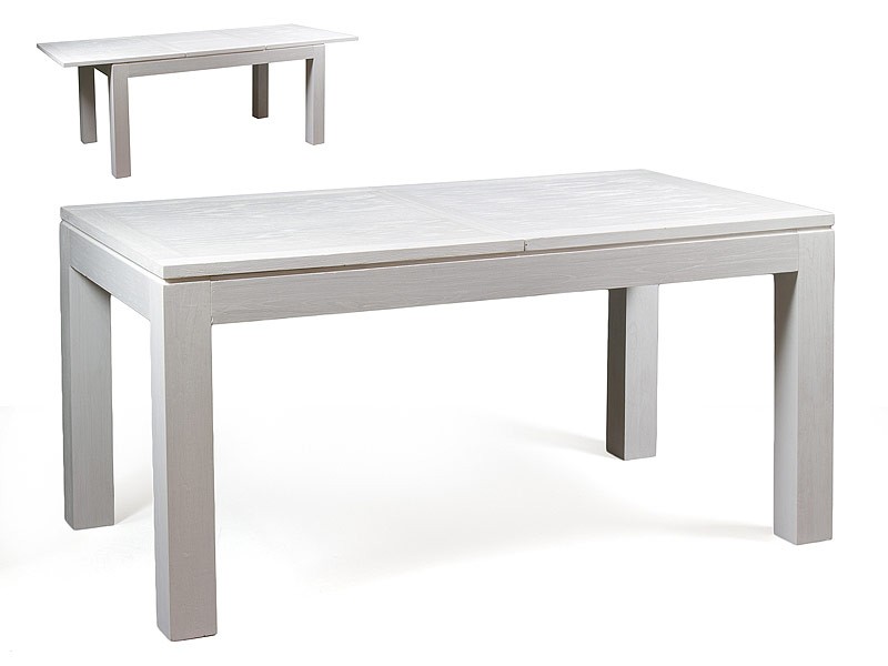 Mesa para comedor de estilo nórdico realizada en madera de mindi de color blanco. Cuenta con una longitud que va desde los 160 cm en su posición normal hasta los 200 cm una vez desplegados sus dos extremos.
