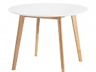 Mesa redonda de 100 cm con tablero de color blanco y patas de madera en color natural. Esta mesa es ideal para cocinas bien iluminadas, dando un extra de luz gracias a la composición de sus colores. Tiene una estructura estable de madera que aporta comodidad en su uso. Su tamaño es perfecto para el uso en el día a día.