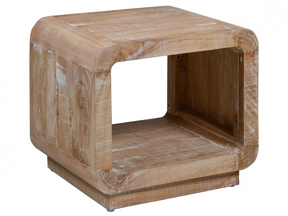 Un mueblecito auxiliar que ofrece mucho juego tanto a nivel funcional como decorativo, puesto que su marcado efecto patinado le confiere una gran personalidad. Realizado en madera de mindi natural con acabado envejecido.