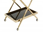 Funcionalidad y sofisticación se dan la mano para ofrecerte este maravilloso carrito camarera, alzado sobre una preciosa estructura de acero inoxidable de color dorado con acabado brillo y culminado con dos prácticas baldas de vidrio templado. Un mueble auxiliar perfecto para dar servicio a la mesa desde la cocina y viceversa con total comodidad.