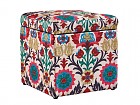 Puff arcón de la colección Mandala de forma cúbica, hecho sobre una estructura de poliéster y acabado con un llamativo tapizado de estilo power flower, repleto de motivos florales en mil y un colores. Bajo su tapa, sobre la que puedes sentarte o apoyar los pies sin problemas, te ofrece un pequeño arcón para guardar todo lo que quieras.