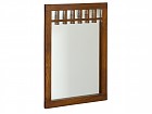 Conjunto decorativo de estilo colonial para la decoración del hall recibidor de la vivienda. Se compone de una consola alta de cuatro patas y un espejo rectangular a juego de diseño vertical. Las dos piezas están hechas en madera de color marrón nogal y presentan un detalle de listones cruzados.