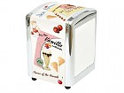 Dale un toque alegre a la par que vintage a la decoración de tu casa, bar o heladería con este servilletero de metal, que incluye servilletas de papel de usar y tirar y está decorado con bonitos dibujos de helados y el lema 'Ice Cream'.