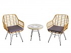 Brinda sofisticación y funcionalidad a la zona exterior de tu casa con este precioso set para terraza o jardín formado por dos sillas con estructura de acero y asiento, respaldo y reposabrazos de ratán sintético a juego con una pequeña mesita redonda que dispone de una tapa de cristal transparente. Estas piezas poseen un diseño elegante y original, adaptándose fácilmente a cualquier estilo decorativo. El tamaño de este set lo convierten en un conjunto ideal para balcones y las terrazas más pequeñas.